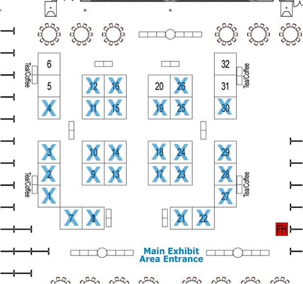 | Exhibitor List PLEASE SEE EXHIBITOR LIST BELOW (or click on the 'x'-ed numbers to view the corresponding exhibitor)  | | Booked by company | Booth No. | Booked by company | | 1 | | 2 | SGI | | 3 | | 4 | | | 5 | | 6 |